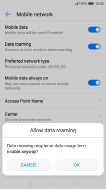 Press the indicator next to "Data roaming" to turn the function on or off.