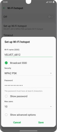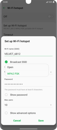 Press WPA2 PSK to password protect your Wi-Fi hotspot.