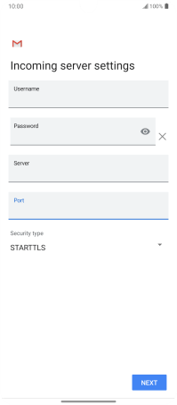 Press the field below "Server" and key in the name of your email provider's incoming server.