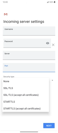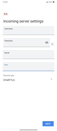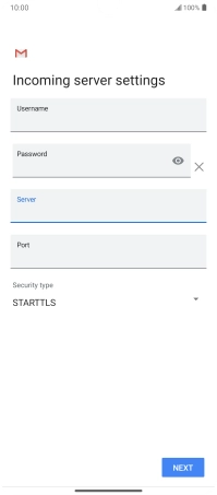 Press the field below "Server" and key in the name of your email provider's incoming server.