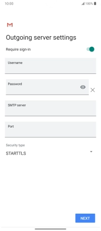Press the indicator next to "Require sign-in" to turn the function on or off. Please note that if you're using Vodafone's outgoing server, turn off SMTP authentication and leave the username and password fields empty.
