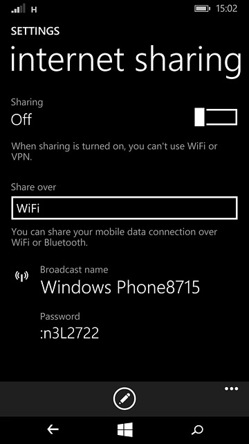 Press the field below "Broadcast name" and key in the required name for the Wi-Fi hotspot.