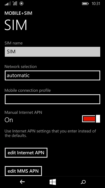 Press the indicator next to "Manual Internet APN".
