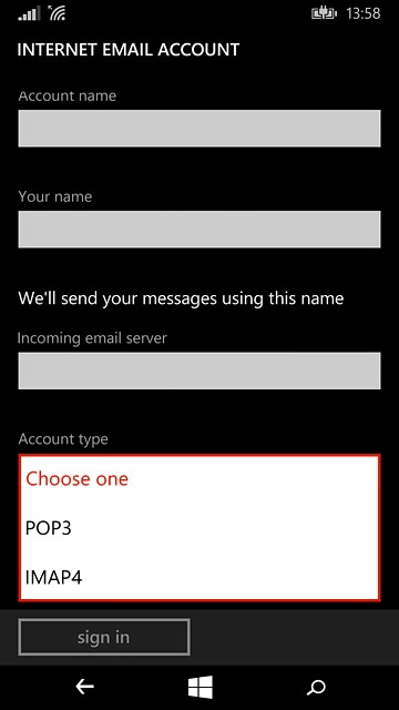 Press the field below "Incoming email server" and key in the name of your email provider's incoming server.