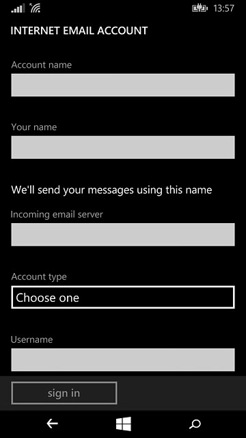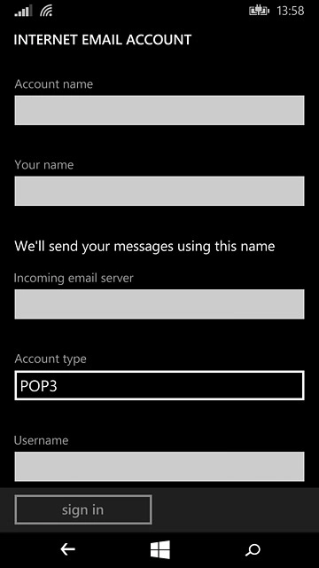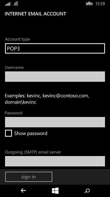 Press the field below "Username" and key in the username for your email account.
