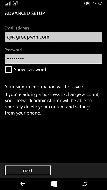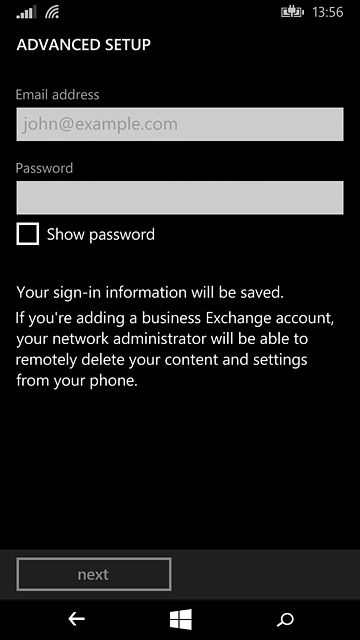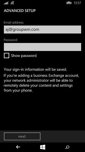 Press the field below "Password" and key in the password for your email account.