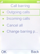 Key in your barring password and press the Navigation key. The default barring password is 0000.