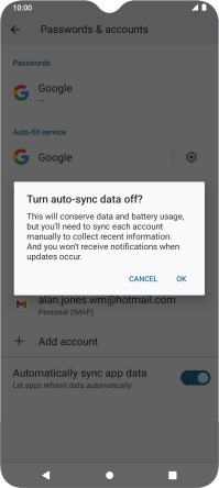 Turn automatic synchronisation of content on your Motorola Moto E13 Android 13 (Go edition) on or off
