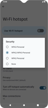 Press WPA3-Personal to password protect your Wi-Fi hotspot.