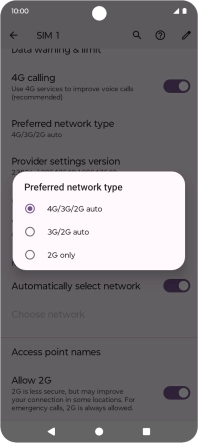 Press Preferred network type.