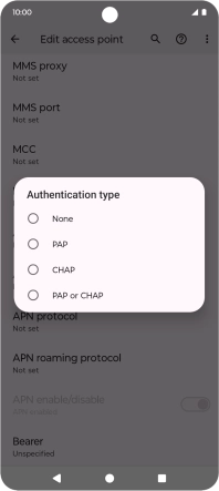 8. Enter APN type