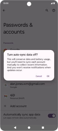 Turn automatic synchronisation of content on your Motorola Moto E14 Android 14 (Go edition) on or off