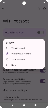 Press WPA3-Personal to password protect your Wi-Fi hotspot.