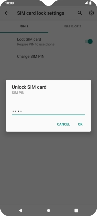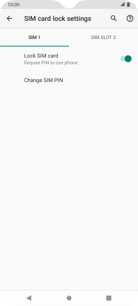 Press the indicator next to "Lock SIM card" to turn the function on or off.