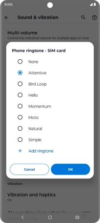 To use a different ring tone than the default ones, press Add ringtone and follow the instructions on the screen to select the required ring tone.