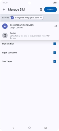You can import your contacts from your SIM to your Google account. This way, you won't lose your contacts if you change your SIM. To import your contacts from your SIM to your Google account, you need to activate your Google account on your phone.