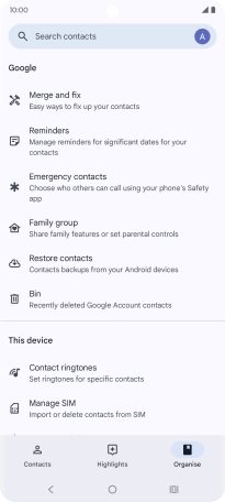 Import contacts from your SIM to your Google account on your Motorola Moto Edge 50 Fusion 5G Android 14