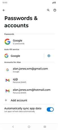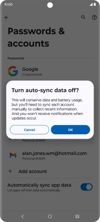 Press the indicator next to "Automatically sync app data" to turn the function on or off.