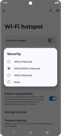 Press WPA3-Personal to password protect your Wi-Fi hotspot.