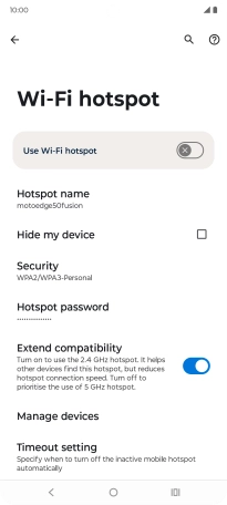 Press the indicator next to "Use Wi-Fi hotspot" to turn on the function.
