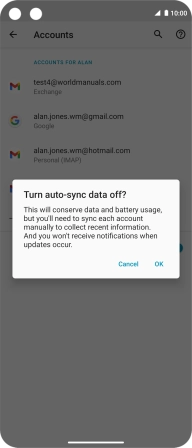Press the indicator next to "Automatically sync data" to turn the function on or off.