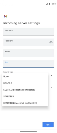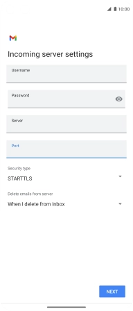 Press the field below "Server" and key in the name of your email provider's incoming server.