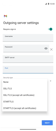 Press the field below "Username" and key in the username for your email the email provider's outgoing server.