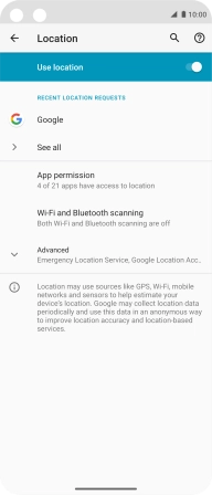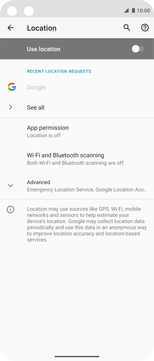 Press the indicator next to "Use location" to turn the function on or off.