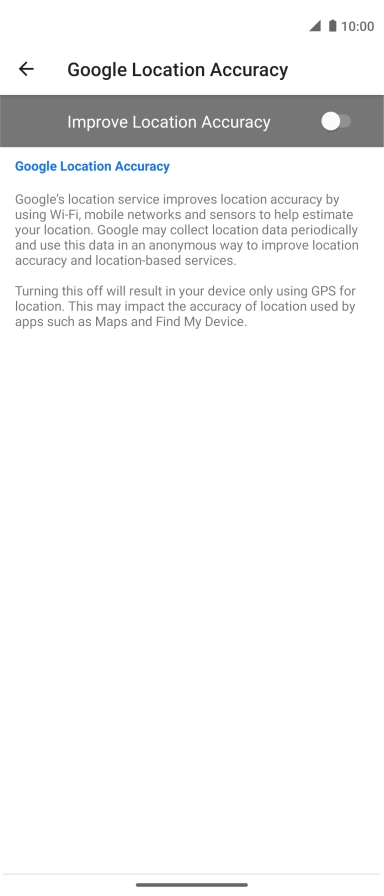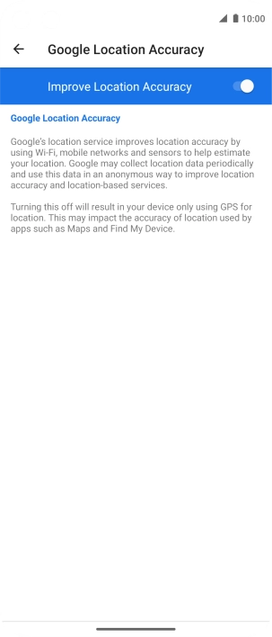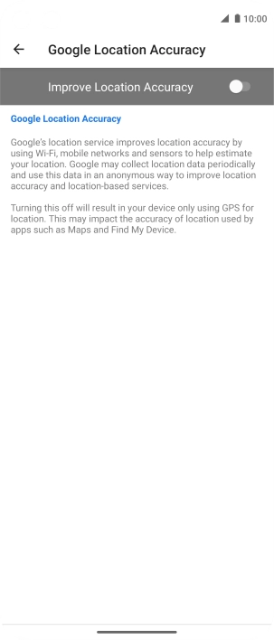 If you press the indicator next to "Improve Location Accuracy" to turn off the function, your phone can find your exact position using the GPS satellites but it may take longer as there is no access to supplementary information from the mobile network or nearby Wi-Fi networks.