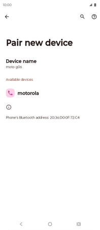 Press the required Bluetooth device and follow the instructions on the screen to pair the device with your phone.