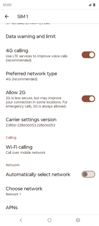 Press the indicator next to "Automatically select network" to turn on the function.