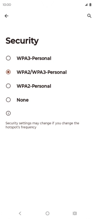 Press WPA3-Personal to password protect your Wi-Fi hotspot.