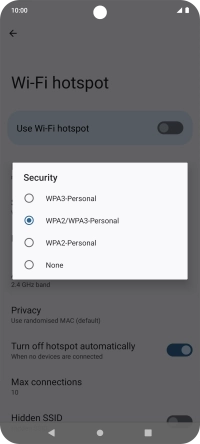 Press WPA3-Personal to password protect your Wi-Fi hotspot.