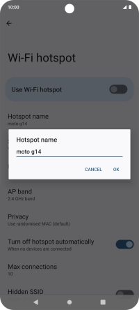 Press the indicator next to "Use Wi-Fi hotspot" to turn on the function.