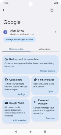 Select settings for Find My Device on your Motorola Moto G14 Android 13