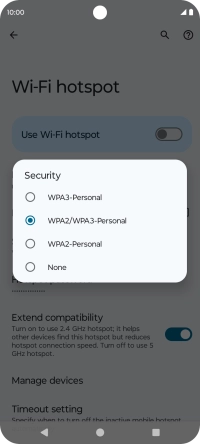 Press WPA3-Personal to password protect your Wi-Fi hotspot.