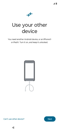 If you have a cable which can connect the two phones, insert the cable and follow the instructions on the screen to transfer content to your phone. If you don’t have a cable, press No cable?.
