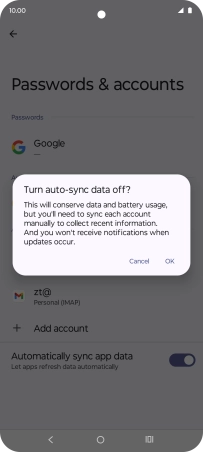 Press the indicator next to "Automatically sync app data" to turn the function on or off.