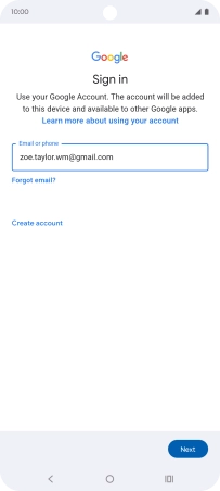If you don't have a Google account, press Create account and follow the instructions on the screen to create an account.