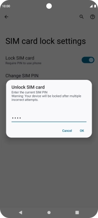 Press the indicator next to "Lock SIM card" to turn the function on or off.