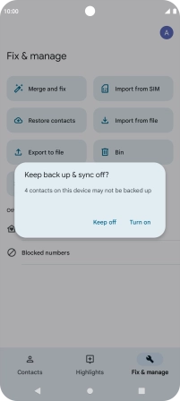 If you want to keep the imported contacts on your SIM, press Turn on.