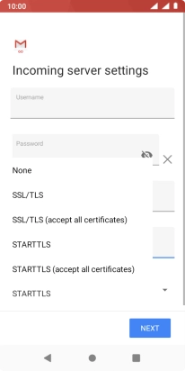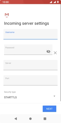 Press the field below "Server" and key in the name of your email provider's incoming server.