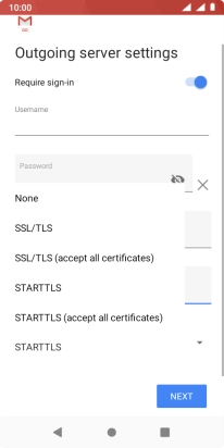 Press the field below "Username" and key in the username for your email the email provider's outgoing server.