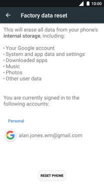 Press ERASE EVERYTHING. Wait a moment while the factory default settings are restored. Follow the instructions on the screen to set up your phone and prepare it for use.