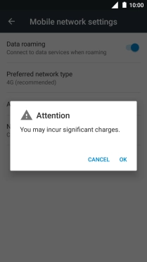 If you turn on data roaming, press OK.
