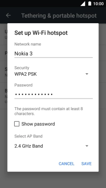 Press WPA2 PSK to password protect your Wi-Fi hotspot.