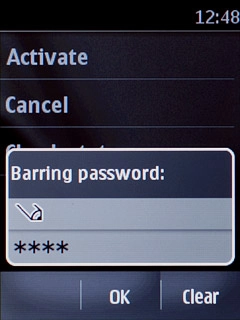 Key in your barring password (default is 0000).