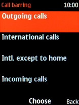Key in your barring password and press the Navigation key. The default barring password is 0000.