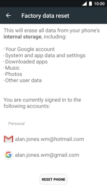 Press ERASE EVERYTHING. Wait a moment while the factory default settings are restored. Follow the instructions on the screen to set up your phone and prepare it for use.