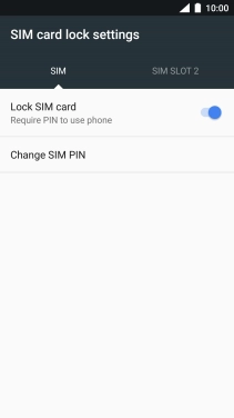 Press the indicator next to "Lock SIM card" to turn the function on or off.